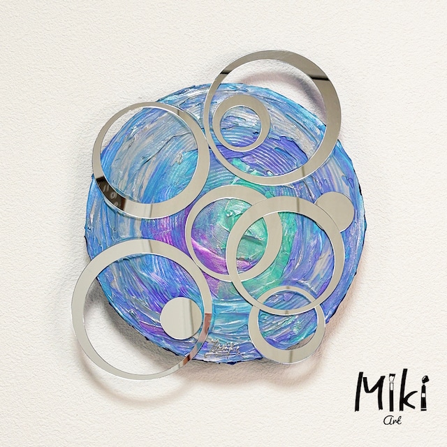 丸いキャンバスにアクリルミラーをはめ込んだテクスチャーアートです。