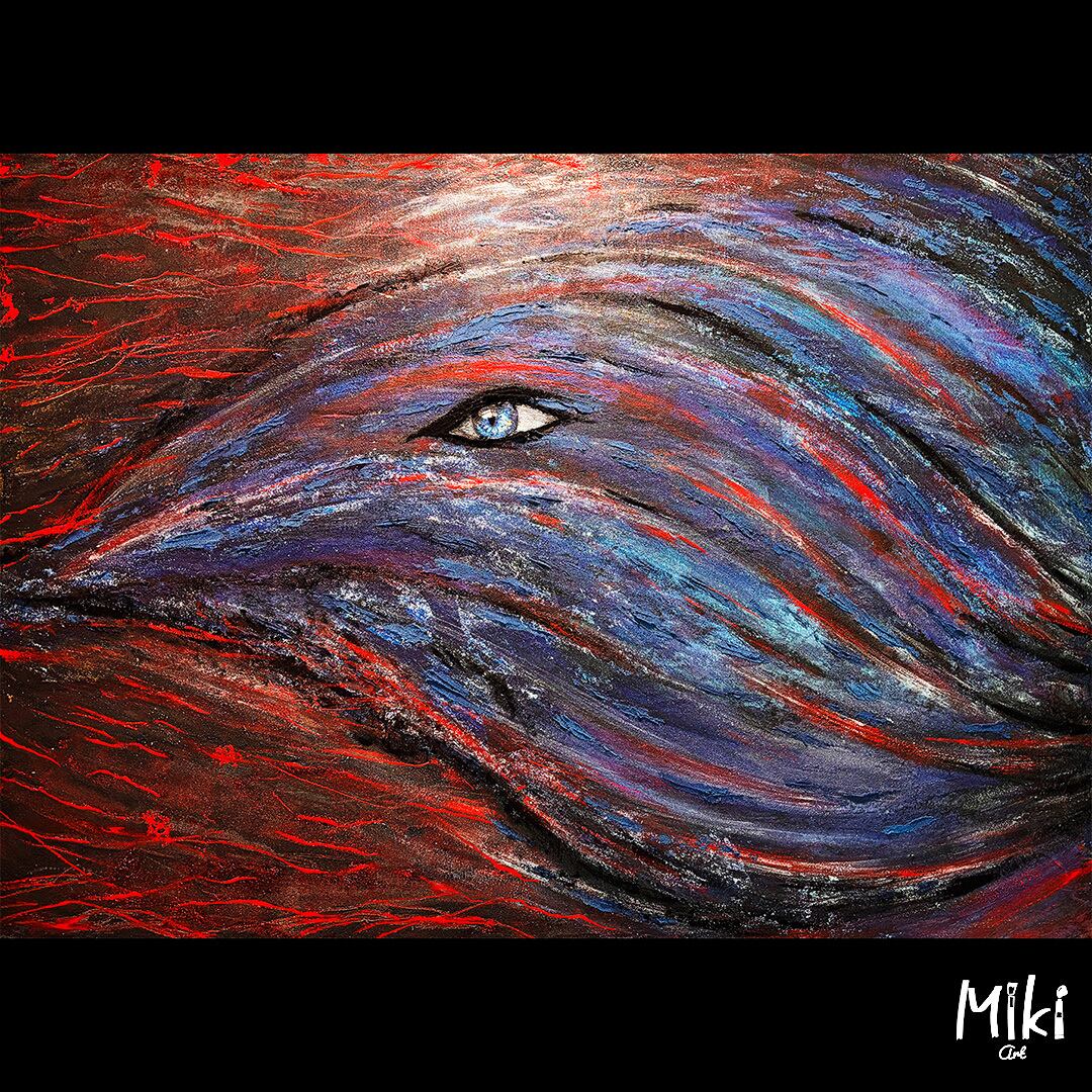 銀箔を絵の具に混ぜて描いた為、キラキラしています。