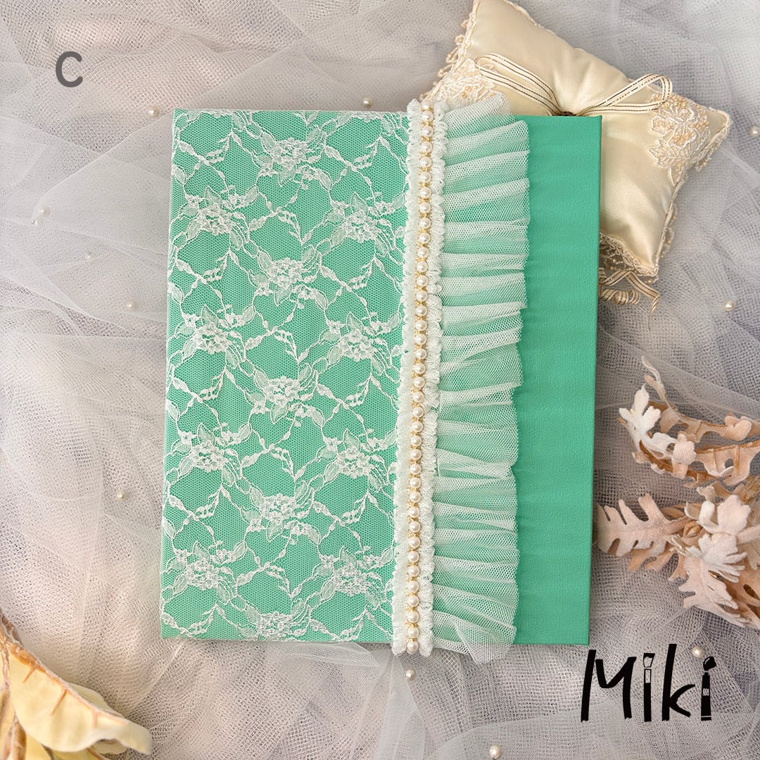 C:レース生地とパール&フリルリボンをあしらった作品です。