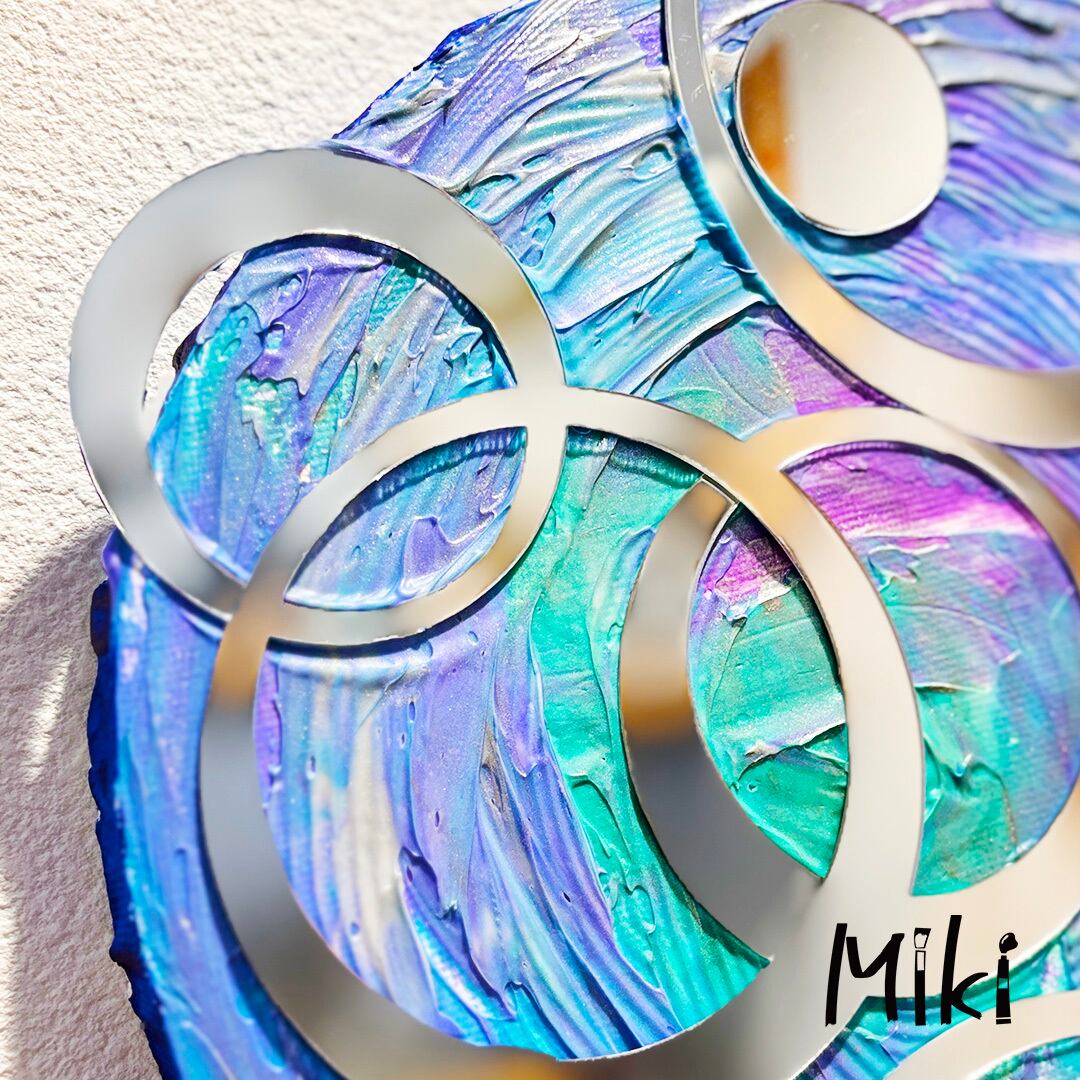 丸いキャンバスにアクリルミラーをはめ込んだテクスチャーアートです。