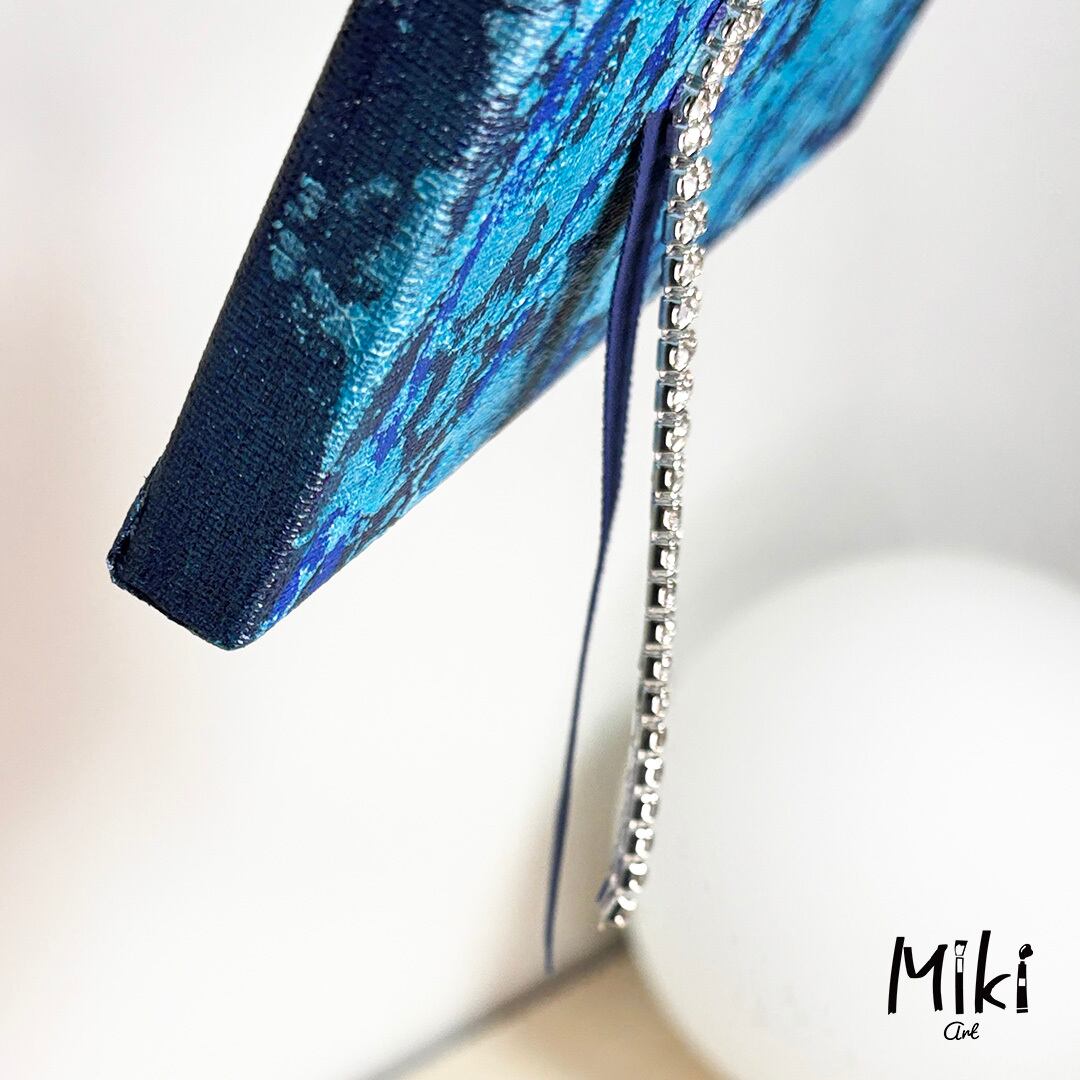 メタリックカラーの背景にマットなブルーリボンとラインストーンリボンを重ねた作品です。