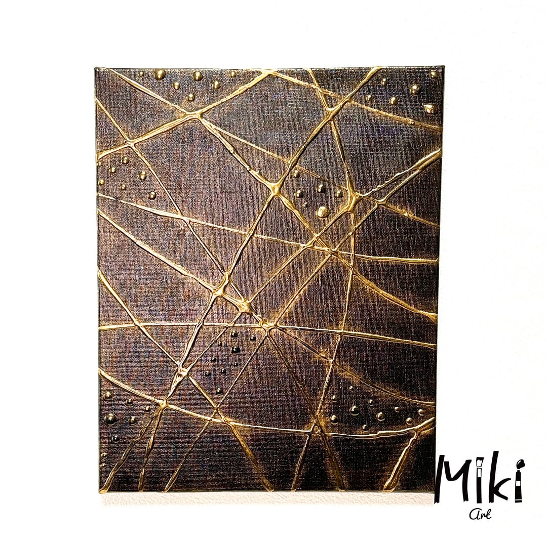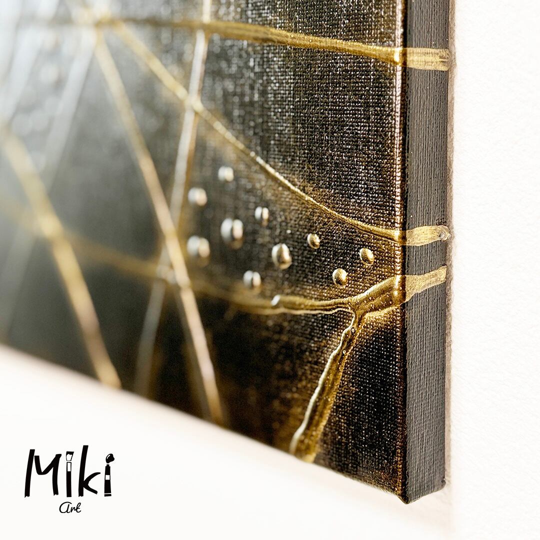 使用画材:木枠キャンバス、アクリル絵の具、ストリンギングメディウム、マイカパウダー、ニス