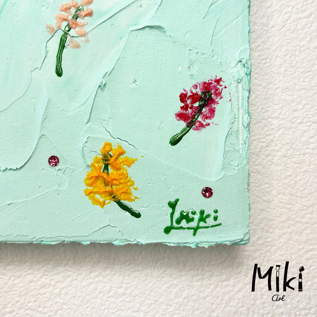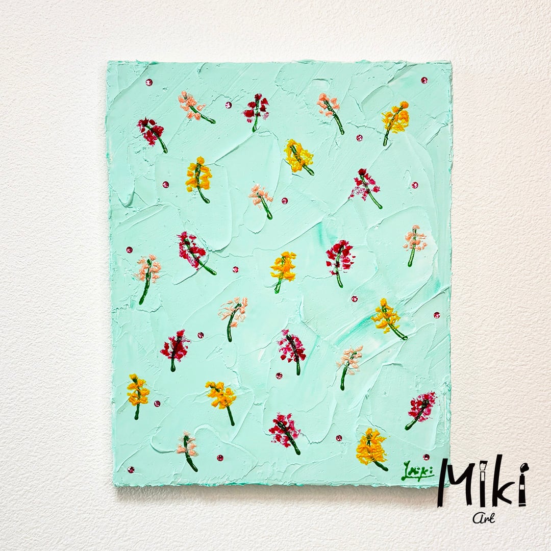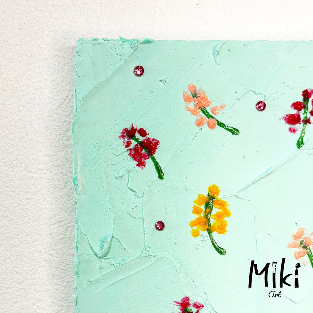 使用画材:木枠キャンバス、アクリル絵の具、モデリングペースト、メディウム、ラインストーン