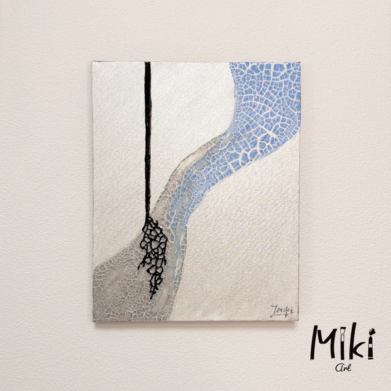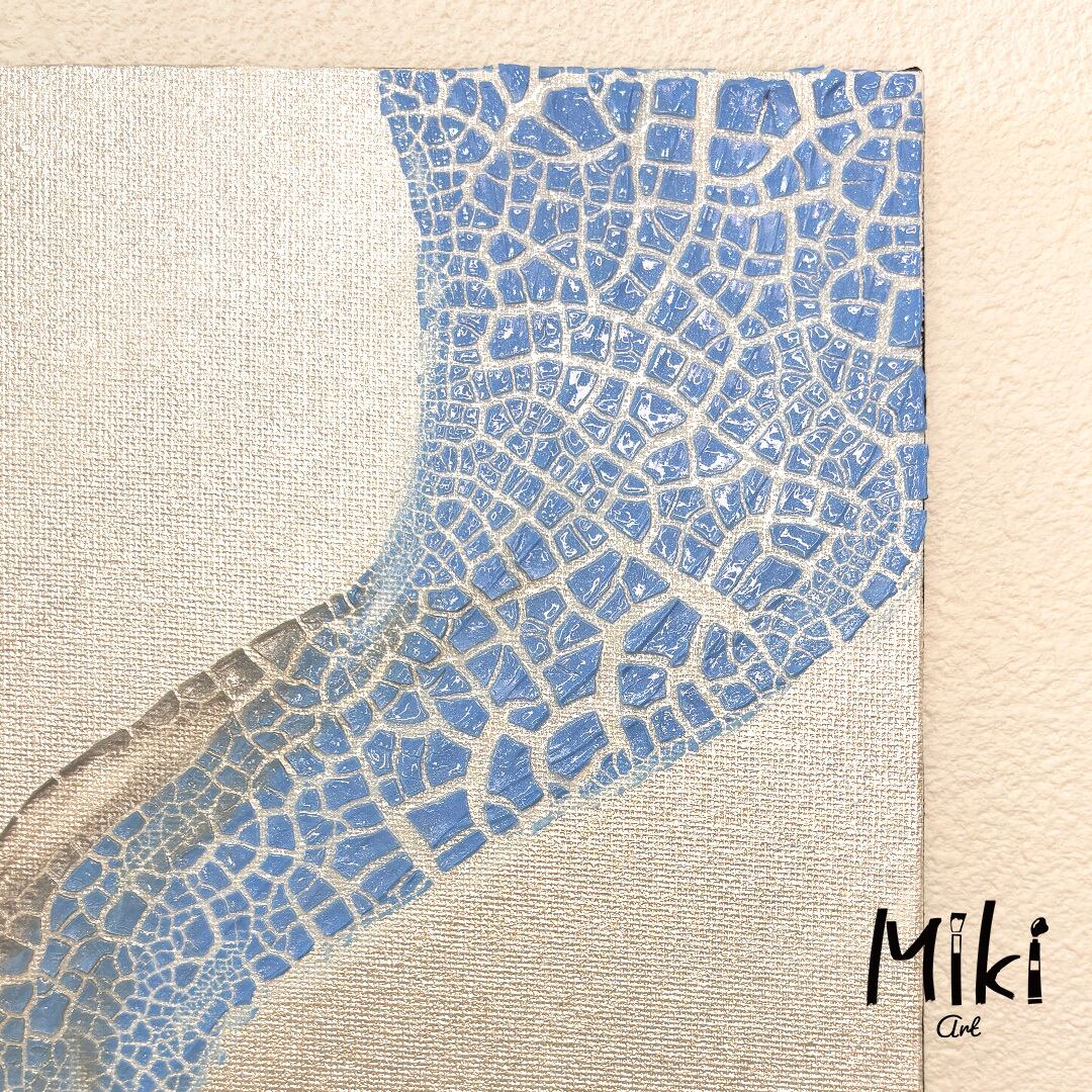 使用画材:木枠キャンバス、アクリル絵の具、クラッキングプライマー、ストリンキングメディウム、ジェルメディウム